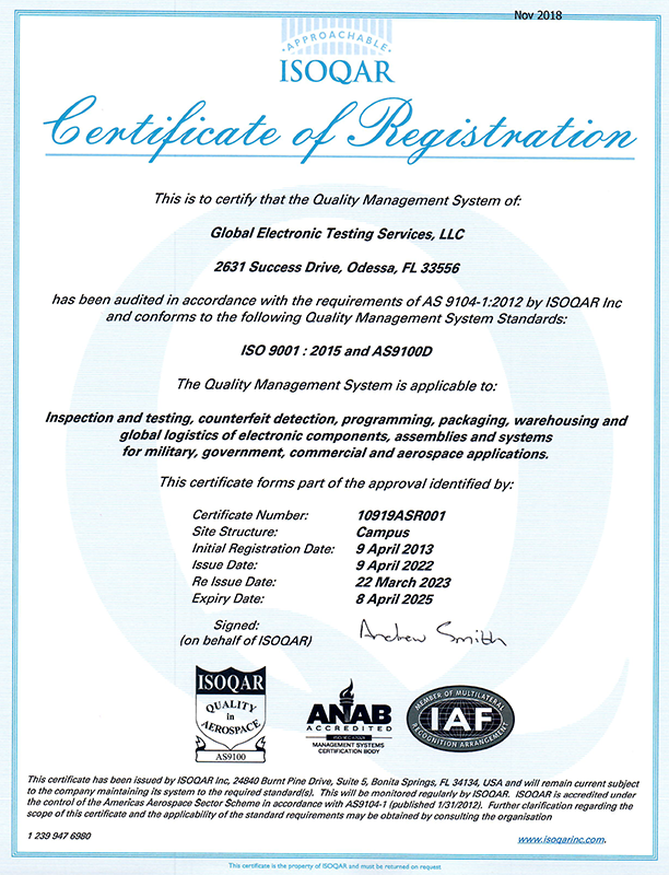 Due to our commitment to providing quality materials the first time and every time, Level Solutions will have all ordered parts third-party tested. This will continue until our quality certifications are in place.